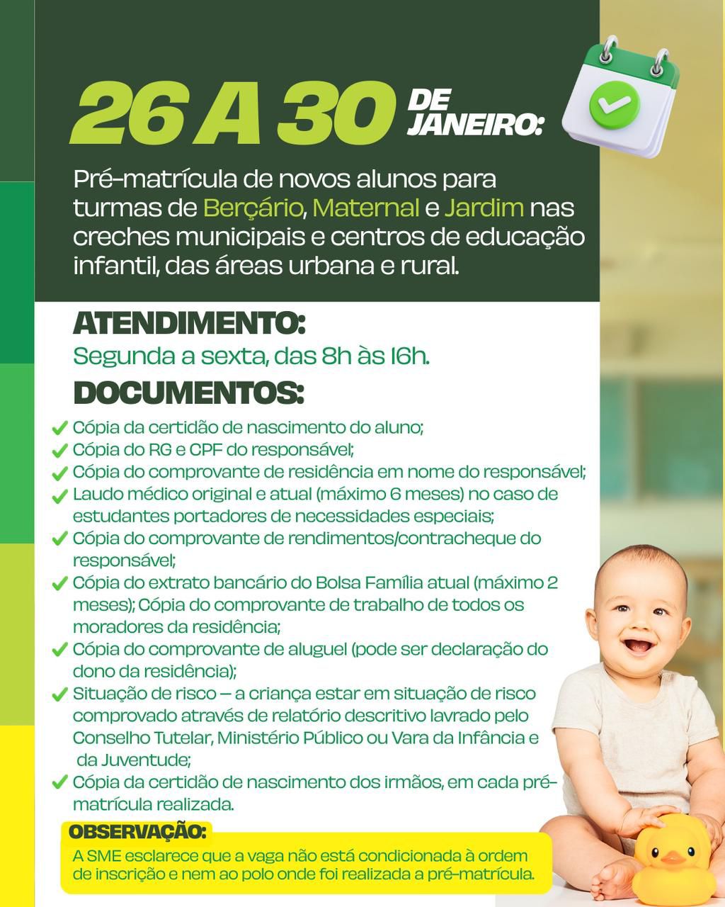 Matrícula deve ser efetivada no período de 9 a 13/2, na unidade para a qual a criança foi direcionada ...
