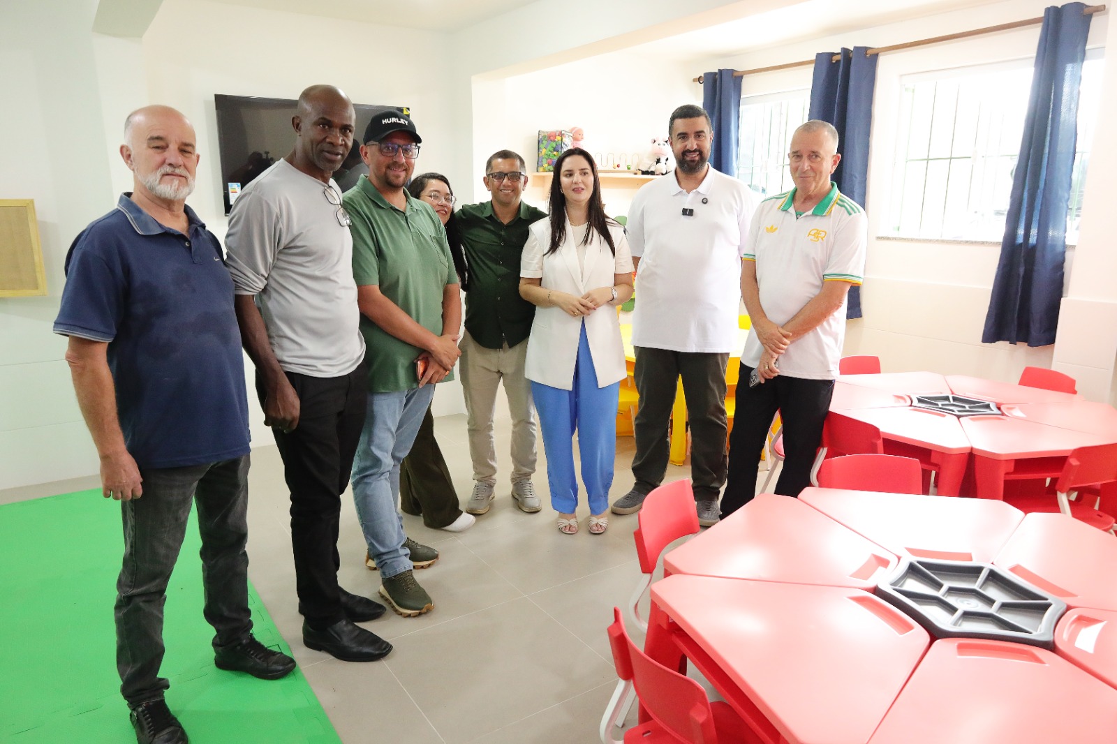 Os vereadores André do Gás, Bruninho Almeida, Cacau Repórter, Caio Pifster, Calé, Dr. Amorim, Dudu do Resgate, Fidel Faria, João Miguel, Luciano Santos, Marcos Rangel, Marcia Valentim, Maurício Lopes, Paulinho Nogueira, Professora Amanda, Totó Online, Vitinho e o deputado federal Bebeto prestigiaram a reinauguração da Creche Paraíso.
