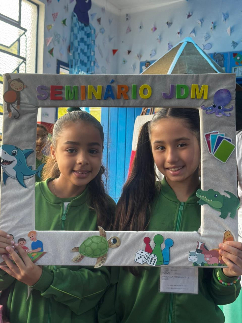 Uma celebração a um ano inteiro de descobertas, aprendizados e de valorização do trabalho pedagógico em que os alunos da Escola Municipal José Duarte Magalhães, unidade de tempo integral localizada em Prata dos Aredes, no interior do município, apresentaram para os estudantes da Escola M. Paulino Custódio, que fica em Canoas, também na área rural, e para a comunidade da região, o Seminário JDM 2025. Os trabalhos produzidos durante o ano letivo tiveram como temas o Fundo do Mar, Jogos e Animais do Zoológico.