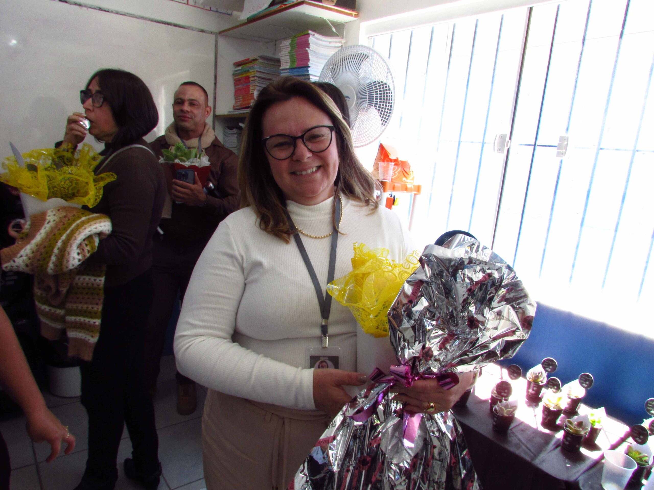 A diretora da unidade, Ângela Cupertino, contou sobre a história da escola, inaugurada em 26 setembro de 2000 e que atende alunos do Pré-I ao 5º ano do Ensino Fundamental. “Desde a inauguração, a escola vem crescendo, tanto em  matrículas quanto na participação efetiva dos pais. A Secretaria sempre presente para nos ajudar, uma comunidade que participa das atividades e projetos propostos. A equipe é de excelência, muitas parcerias que contribuem para a evolução das nossas crianças! Tivemos momentos de dificuldade, mas também de grandes conquistas e realizações!”, comemorou Ângela Cupertino, que fez questão de agradecer todo o apoio e contribuição da professora Elane do Nascimento Souza, com quem compartilhou a gestão da escola.