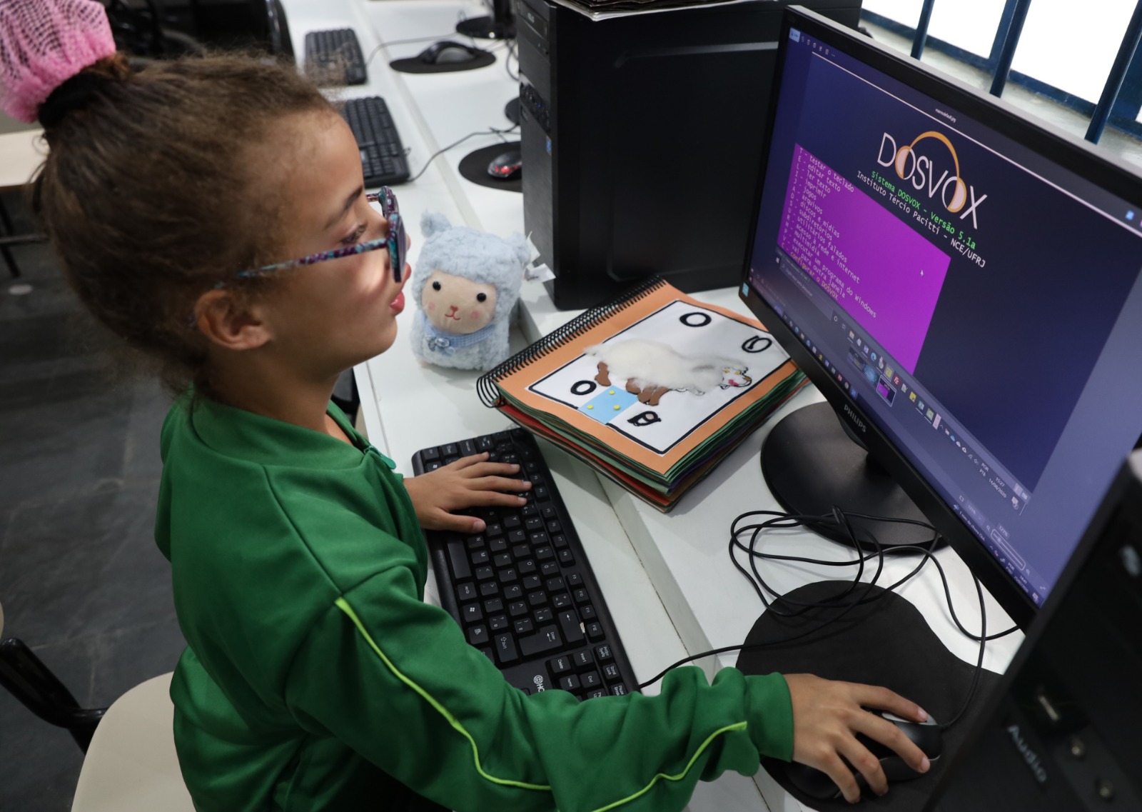 Na Escola Municipal Vera Pedrosa, Cristina realiza um trabalho formidável com alunos que possuem deficiência visual, como a Emily, de 8 anos, que cursa o 1º ano. O projeto também está presente nas demais escolas da Rede Municipal que atendem estudantes com deficiência visual e/ou auditiva.